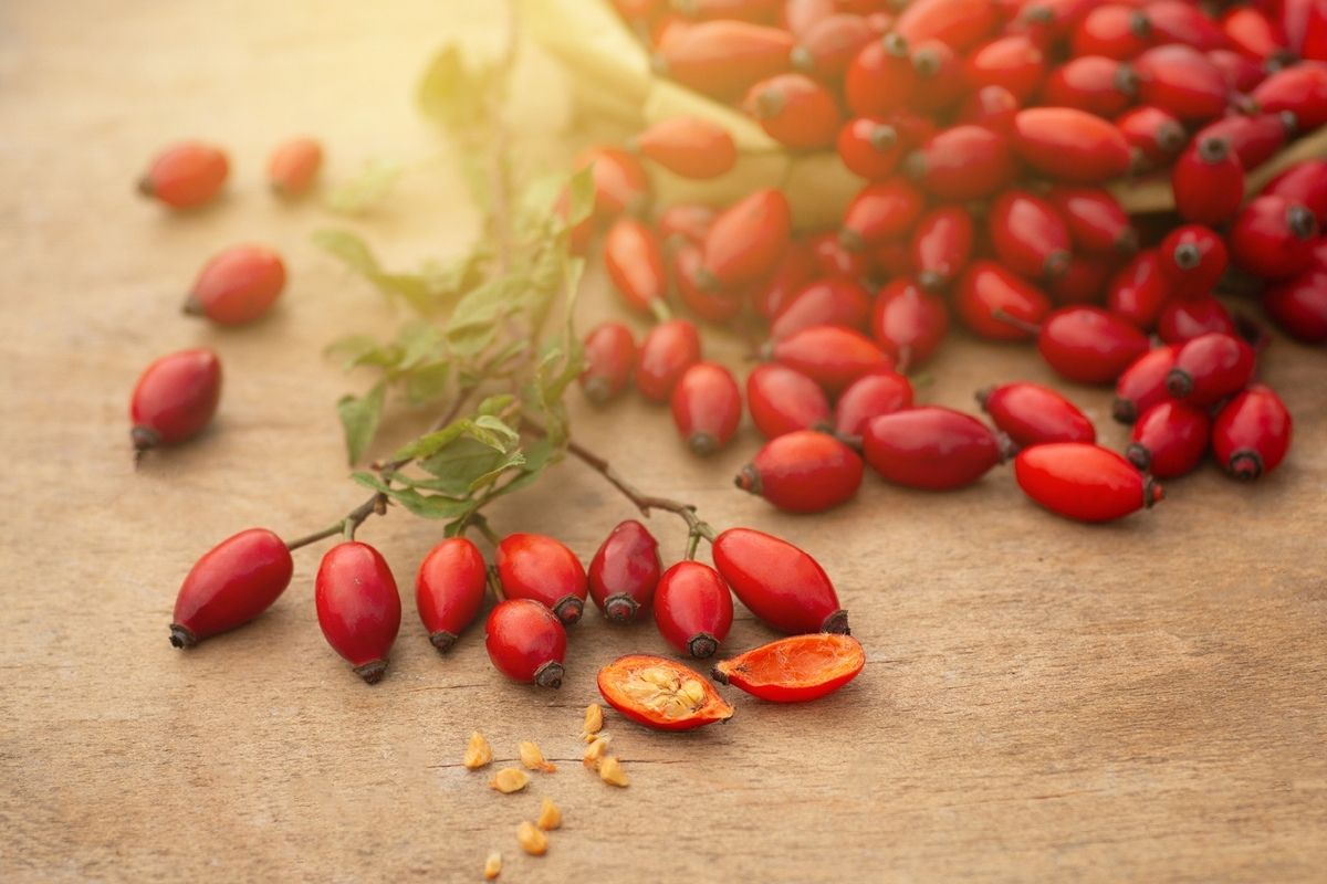 Die Hagebutte enthält viel Vitamin C, dem eine wichtige Rolle bei der Kollagensynthese zugeschrieben wird. Aufgrund seiner hoch bioaktiven Form kann das Vitamin C aus der Hagebutte besonders gut vom Körper aufgenommen werden.